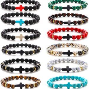 Features: Includes 12 different color stone bead bracelets, all made with natural lava rock and alloy. The porous lava beads are perfect for diffusing essential oils, making this a calming and health-boosting choice. Elastic design for easy slip-on, comfortable fit. Ideal for adding a pop of color and natural vibe to any look.