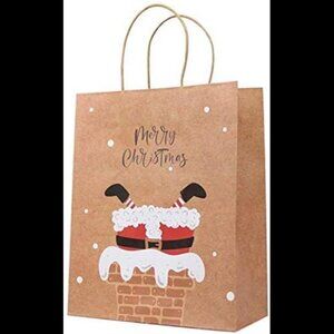 12Pcs Santa Claus Christmas Kraft Paper Gift Wrap Bags, Chimney Xmas Tree, 10 In