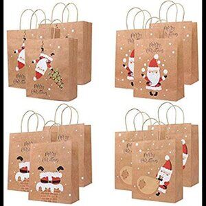 -__ HO HO HO- Spread the holiday cheer with these Santa Claus gift bags! Gift all of your family and friends with these fun & festive kraft bags. Each package has 4 different designs in a set of 3. You will receive 12 gift bags in total, enough for you to make all of your gift giving tasks possible!