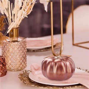 🧿These small rose gold artificial pumpkins will become an elegant addition to the fall baby shower decor, autumn wedding decor, fall centerpieces, fall floral arrangements, fall wreaths and garlands, Thanksgiving tablescape, place card settings, autumnal bowl displays, Halloween decorations, table scatters, photo props, fall craft projects, tabletop displays, and so on.