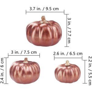 🧿Quantity: Package includes 12 pcs small rose gold artificial pumpkins in 3 sizes. These faux rose gold pumpkins look so contemporary and stylish and can match your Thanksgiving and Halloween decorations very well. Whether you set up an elegant autumn centerpiece or arrangement, create a unique seasonal bowl display, or design festive fall wreaths and garlands, these fancy looking decorative pumpkins will make your projects stand out and sparkle!