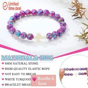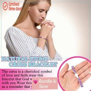 12-Piece Natural Stone Cross Bracelets with Religious Cards for Women