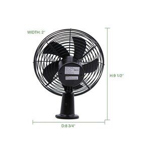 ✅Metal Construction: With 100% heavy-duty metal construction and black finish. DC 12-Volts motor dresses up the interior of any RV with only 1. 3 Amps at high speed. Great for cooling and defogging. Size: D 8-3/4’’ x H 9-1/2’’ x W 2’’.