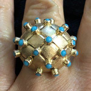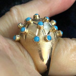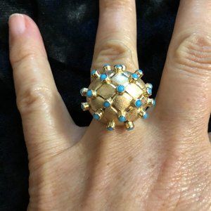 Vintage 1970's 12k Solid Yellow Gold Turquoise Dome Ring See our photos and GSA certified appraisal for details.