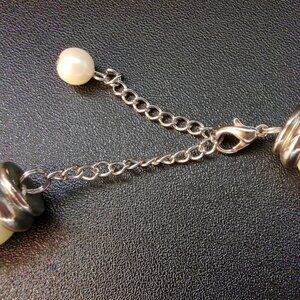 Made of Glass pearls ( not plastic)...much more durable than plastic or even genuine pearls, as they are resistant to cosmetics and scents.