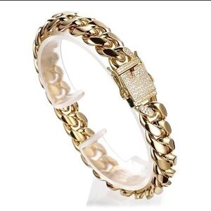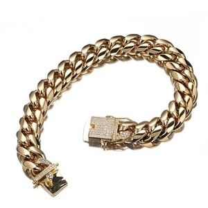 12mm Mens Miami Cuban Link Chain Bracelet Solid 18k Gold Plated Stainless Steel