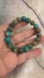 This is a handmade authentic piece of Native style jewelry due to its turquoise color variations. Please be aware the beads on this bracelet are imperfect. The imperfections only enhance the authenticity of this gorgeous bracelet. It is on a stretch cord and there is room to size up some. I wear a size 7 and it fits a little loose on my wrist.