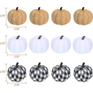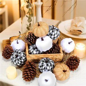 🧿Package Include: 4pcs white pumpkins, 4pcs burlap pumpkins, 4 black-white checkered pumpkins.