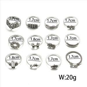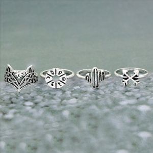 12-piece Zodiac Symbols Fox Cat Silver Ring Set