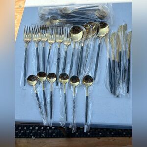 Enhance your dining experience with this elegant gold and black cutlery set. Perfect for any occasion, this set adds a touch of sophistication to your table.