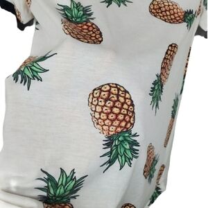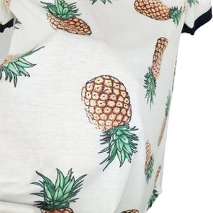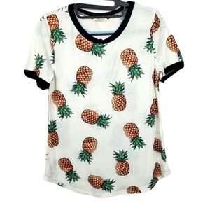 Pineapple white ringer t-shirt sz S by 12pm by Mon Ami. Soft lightweight and semi-see-through.