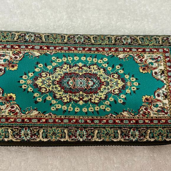 Beautiful green, gold, and colorful fabric wallet
