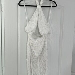 Pearl mesh maxi dress worn once for my bachelorette trip. Small imperfections at bottom of dress from walking due to length. Dress has been cleaned.