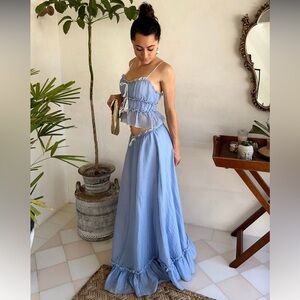 This elegant blue maxi skirt is perfect for any occasion. Its flowing design offers both comfort and style. Pair it with your favorite top for a chic look.