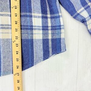 12th Tribe Fireside Flannel Jacket Women One Size Blue Plaid Oversize Wool Blend
