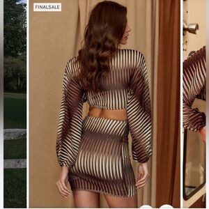 - brown, black and cream netted mesh mini dress