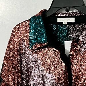 12th Tribe Genevieve Emerald Sequin Button-Up Size Medium NEW As Seen On TikTok