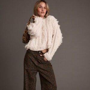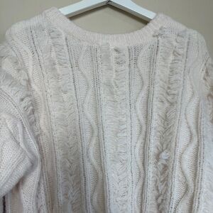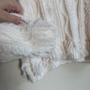 12th Tribe Lorie Beige Fringe Sweater Boho Oversized Crewneck Sweater Women’s M