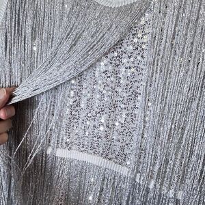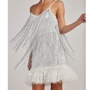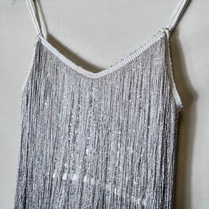 Tags: fringe metallic silver sequins disco flapper tassel cocktails party holiday festival festive NYE rave bachelorette party Gatsby 1920s sparkly shimmer glitz glitter sexy unique fun glamorous