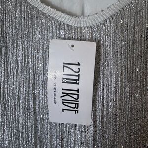 12th Tribe NWT Woman's Disco Fever Silver Fringe Sleeveless Mini Dress Size M