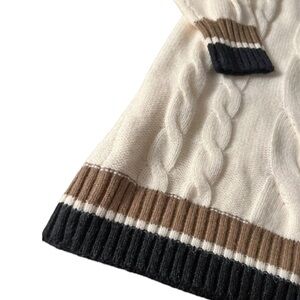 12th Tribe Peggy Cable Knit Sweater Dress. Size Small. In excellent very gently one time worn condition. No signs of wear. Belt shown in stock photos not included. Mini length. Cable knit. Long sleeves. Pullover style.