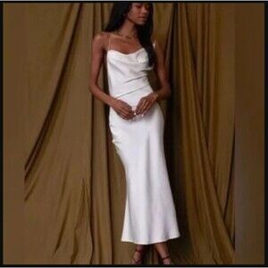 12th Tribe San Marino Slip Dress Ivory Midi Cowl Neck Strappy Satin NWT M
