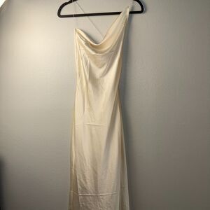 12th tribe slip dress, ivory satin midi dress, cowl neck strappy dress, satin cocktail dress medium, minimalist satin slip dress