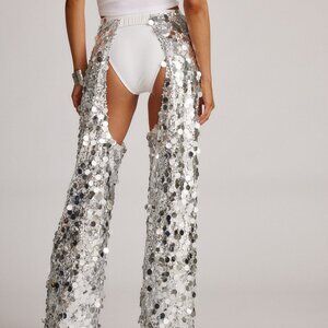 Only thing better than cowboy chaps? Sequin cowboy chaps. Yep, we did that. The Walker Payette Chaps are your ultimate festival companion, adorned with flashy, silver sequins and complete with an adjustable buckle waist. This style pairs well with a bodysuit, boots, and the Do Lab.