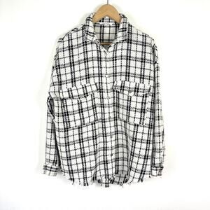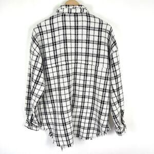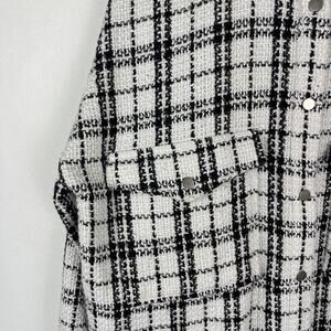 12th Tribe White Black Plaid Tweed Shacket Jacket Snap Button Women's One Size