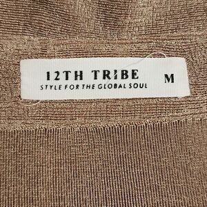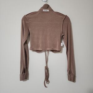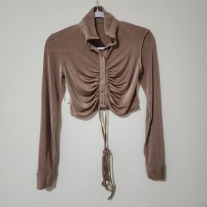 12th Tribe Womens Knit Cropped Button-Up Top Shimmery Brown Long Sleeve Size M