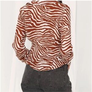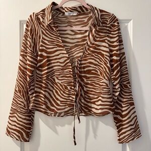 12th Tribe Zebra Sheer Front Tie Top. Size small. Rusty brown stripes 0002