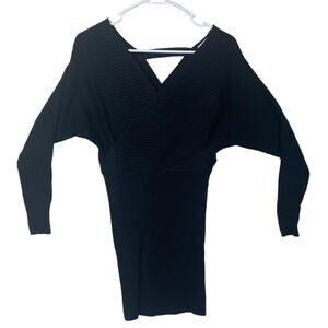 12th tribe womens large salty in the city black sweater mini dress v neck date r