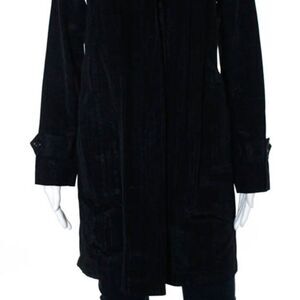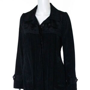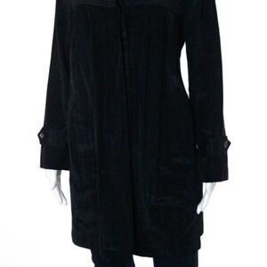 Gorgeous 12th Street by Cynthia Vincent designer black, button front, long sleeve coat. Bust: 34", Sleeve length: 24". Cotton blend. Lined. Size: 6