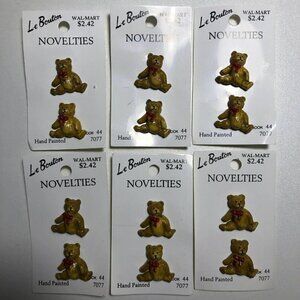 12x Vintage La Mode Teddy Bear Shank Buttons Hand Painted 'New Old Stock #3602-3