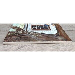 12x16 Painting On Canvas "Window, Tree and Cat" Americana-Unknown Artist