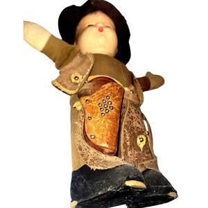 This Sweet Cowboy and his friends were popular from the 1920s to the 1960s, capturing hearts with their vintage charm! This doll's head is made of a composition material, giving him a classic look. The body is typically made of a hard-stuffed cloth, perfect for cuddling and display.