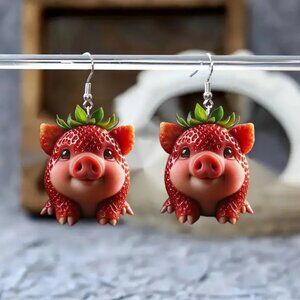 #13 Adorable Acrylic Strawberry Pig Earrings