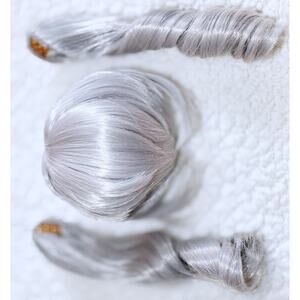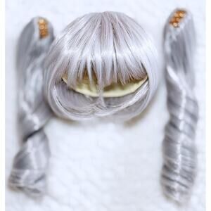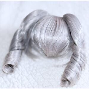 Super cute! Silver gray color, twin tails style (spiral curls). Tails are removable clips. Please note that wig is pre-owned. It may have some original styling product on fibers.