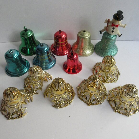 13 Bradford Unbreakable Filigree Plastic Bells Filagree Christmas Ornaments READ