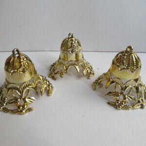 6 Gold filagree bells, PLEASE NOTE: 3 bells are missing pieces near bottom, please see pictures (just hang them with the damage in the back and they will still look great!)