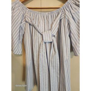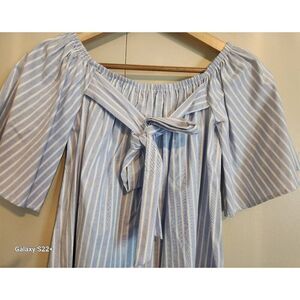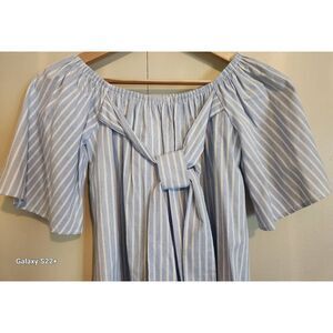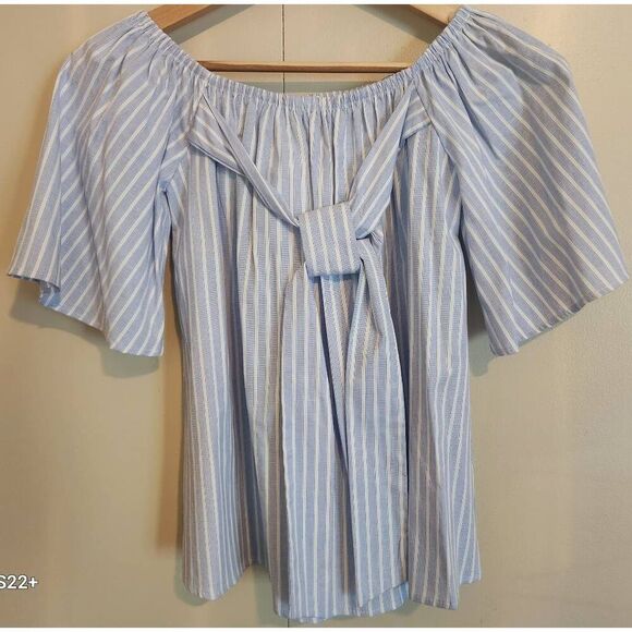 +13 Carole Christian blue n white stripe blouse with front tie NWT