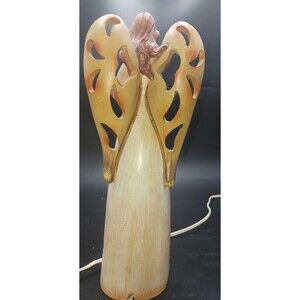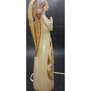 This is a 13-inch wooden night light lamp with a carved angel design. This item is hand carved in excellent pre-owned condition.