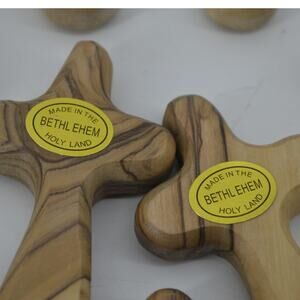 (13) Comfort Cross Natural Olive Wood Hand Carved Bethlehem