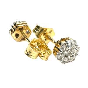 10 kt gold 1/3 ct (tcw) natural diamond cluster flower diamond earrings. A cluster of 7 natural diamonds in shape to look like a flower. From further away, looks like one larger diamond. Shiny and beautiful.