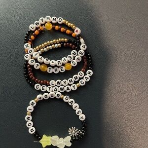 Bracelets cover quotes, eras, albums, songs. You get 13 random per order. See the photos for examples. LWYMMD!!!!