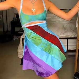 Feel the nostalgia in this 13 Going On 30 multicolor cut-out dress. This dress just amplifies the love for the early 2000's. This mini dress features a multicolor striped design and cut out feature that is sure to make the iconic Jenna Rink proud!