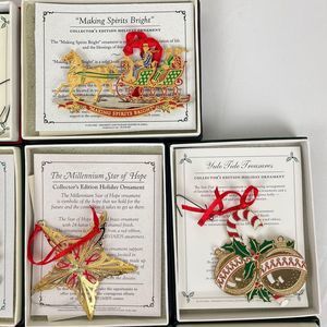 Lot of 13 Collector's Edition Holiday Ornaments. Each is solid brass with a 24-karat gold and enamel finish. The ornaments are suspended from a red ribbon, the international symbol for HIV/AIDS awareness. These are dated from the late 1997 up to 2012. All are in excellent condition and come with their original boxes.