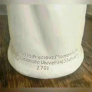 Vintage 1998 Precious Moments large 13 inch garden statuary. Set includes 2 girl angels and 1 boy angel. Some area of peeling paint bottom of gown and shoes on 2 of the statues, and they will need cleaned. No chips or cracks. Good preowned condition.