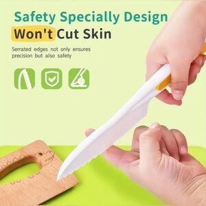 Healthy and Safe Material:The kids knifes for real cooking is made of wood and High quality food grade polypropylene,the kids knife is made of quality stainless steel and pp material. These kids knives are non-toxic, BPA free materials, safe to use, exquisite workmanship, not easy to break and deform.