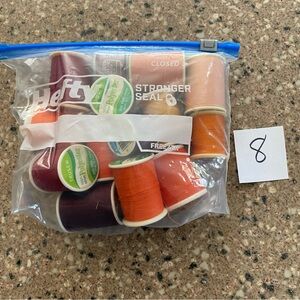 A collection of assorted sewing thread spools in various colors. Perfect for sewing projects.
